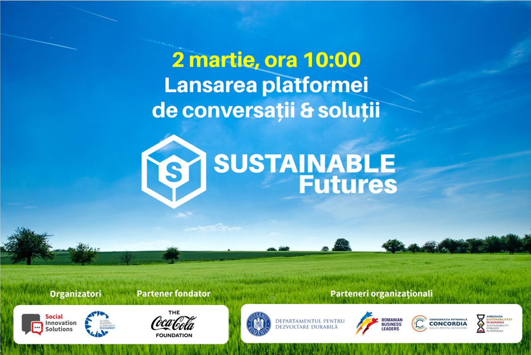Miercuri, 2 martie, are loc lansarea platformei de conversații Sustainable Futures (SF), precum și prima conversație din serie. Evenimentul offline va putea fi urmărit pe paginile de Facebook și YouTube ale Social Innovation Solutions.