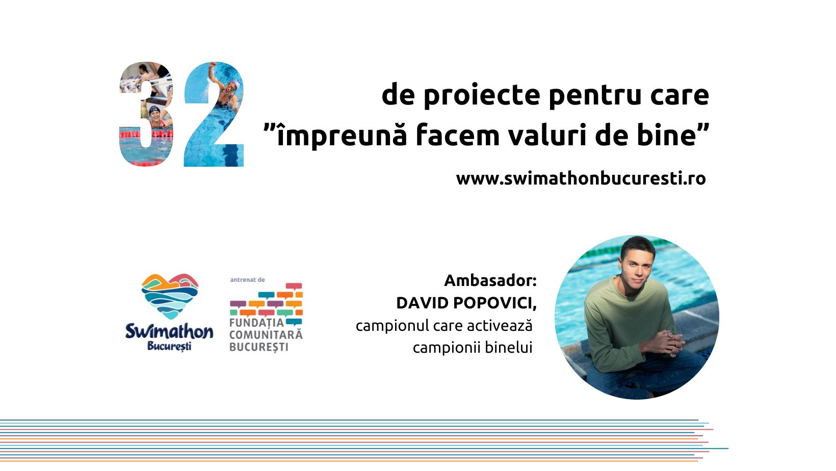 Perseverența și generozitatea înotătorilor-fundraiseri care strâng bani pentru cauza aleasă și a donatorilor care îi susțin este activată anul acesta de campionul David Popovici, în calitate de ambasador al campaniei.