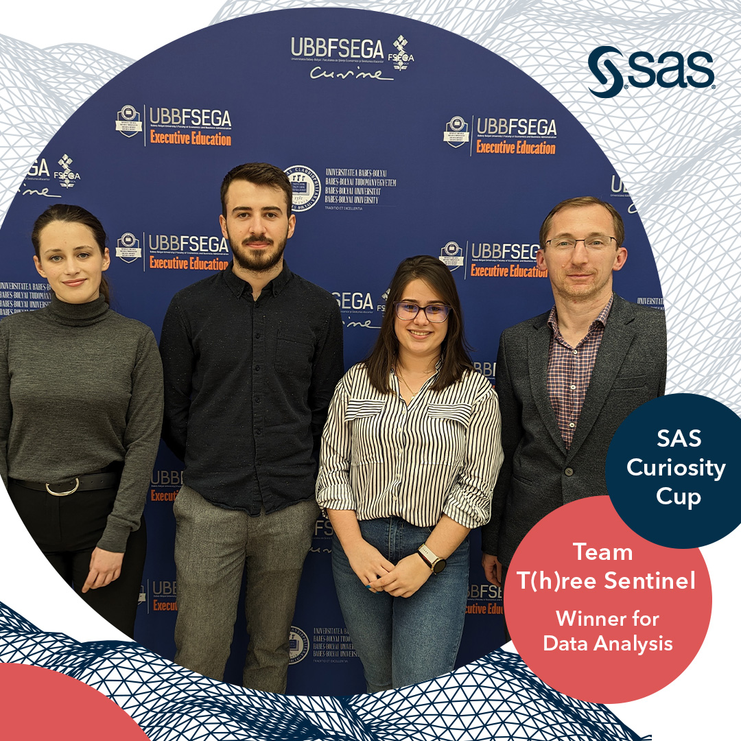 Marian-Lucian Coțolan, Adina Tilea și Bianca-Nicoleta Marian sunt cei trei membri componenți ai echipei câștigătoare T(h)ree Sentinel. Cei trei tineri au fost coordonați de către Lect.univ.dr Darie Moldovan, de la Facultatea de Științe Economice și Gestiunea Afacerilor din cadrul UBB Cluj-Napoca. Cercetarea care a adus locul întâi echipei clujene la competiția SAS Curiosity Cup, în cadrul categoriei Data Analysis, a avut ca subiect clasificarea imaginilor din satelit pentru a detecta defrișările din Munții Carpați.