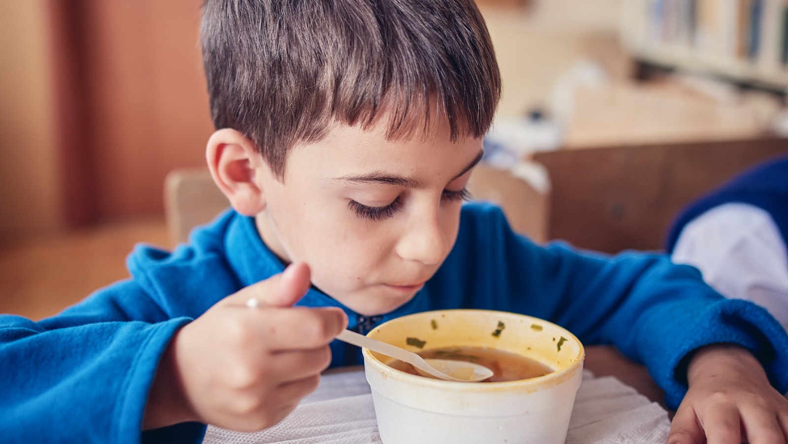 30% dintre copiii din medii defavorizate nu mănâncă prânzul acasă, respectiv 28% dintre acești copii (unul din patru) nu mănâncă nici micul dejun, nici prânzul acasă. Probabilitatea de a nu servi prânzul acasă crește odată cu vârsta copilului, de la 24% pentru copiii înscriși în clasa I, până la 43% pentru copiii înscriși în clasa a VIII-a. Principala justificare oferită de către părinți pentru faptul că nu se servește prânzul acasă pentru copil este masa primită la școală. 43% dintre părinți declară, de asemenea, că nu au bani suficienți pentru cumpărarea alimentelor necesare pregătirii prânzului. Unul din cinci copiii din medii defavorizate (22%) merge seara la culcare fără să ia cina.